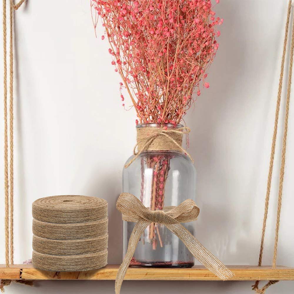 - DIMENSIONS AND PACKAGE: 4 rolls burlap Ribbon, 0.8 inch width, 32.8 Feet each roll (Total 131 feet of 4 pack), perfect for Christmas wedding, parties, bottle decorations, scrapbooks, crafts, gift wrapping, flower arrangements ,wreath making projects,DIY crafts