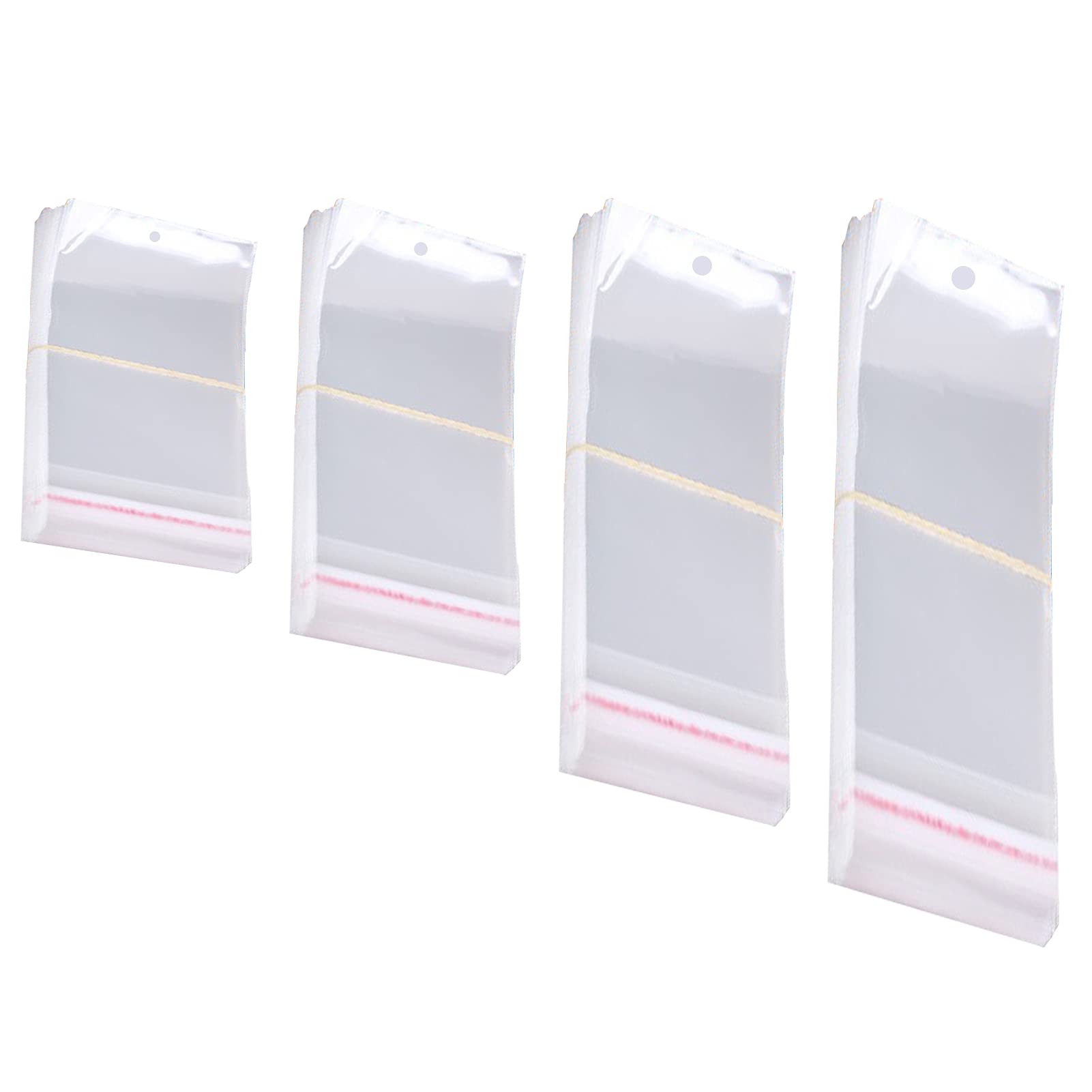 - 【PACKAGE INCLUDES】You will receive 400pcs self-sealing bag with hang hole of 4 size: 3.5 x 4.7inch, 3.5 x 5.5inch, 3.5 x 7.8 inch, 3.5 x 11.8 inch, each size has 100pcs bag. These clear plastic hanging bag can meet all you needs.