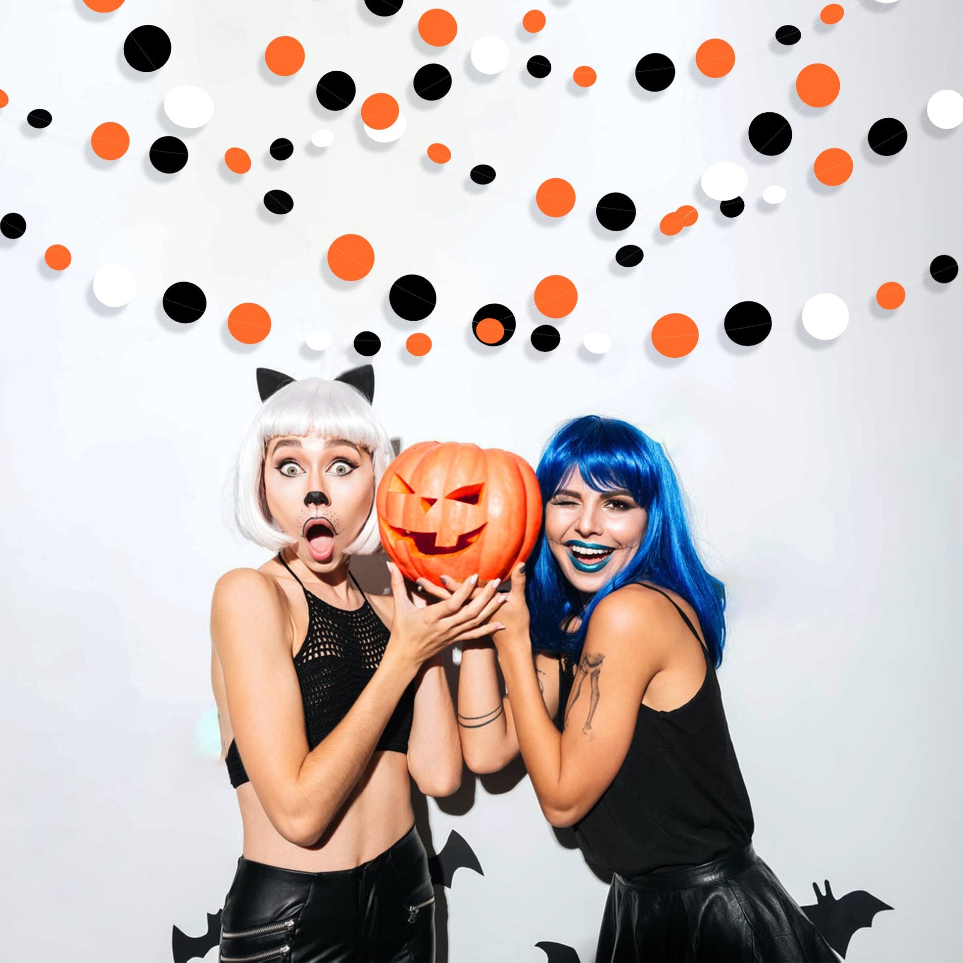 - ⚫PACKAGE CONTAINS- 4 set of black orange circle dot party garland banner,Each string is 11.5 feet/3.5 meters, Total is 14 meters/46 feet.