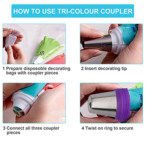 - 47 PCS RUSSIAN PIPING TIPS SET: Includes: 12 flower frosting tips nozzles Icing tips for cake decorating tips kit. Baking supplies for cookie cupcake, 2 leaf piping tips, 2 couplers, 30 pastry baking bags, 1 reusable silicone bag. Our 47 russian piping tips set let you have everything you need to decorating your cupcakes, cakes, cookies, pastries etc!
