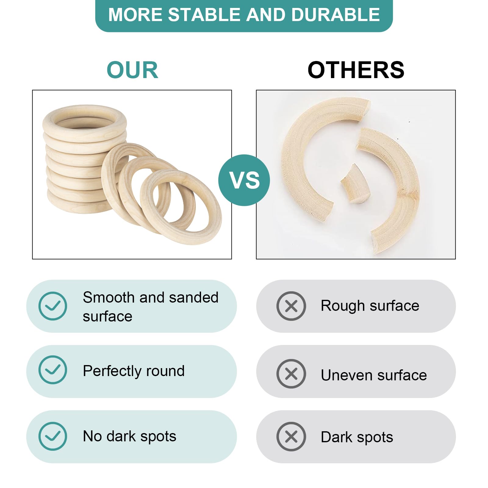- Smooth and comfortable: These round wooden rings do not have huge knots or rough spots, smooth appearance, providing you comfortable touch feeling. Our wood ring is perfect for creating beautiful pieces like earrings, necklaces, and pendants. You can also use it to style your home decor, hang curtains or make napkin rings