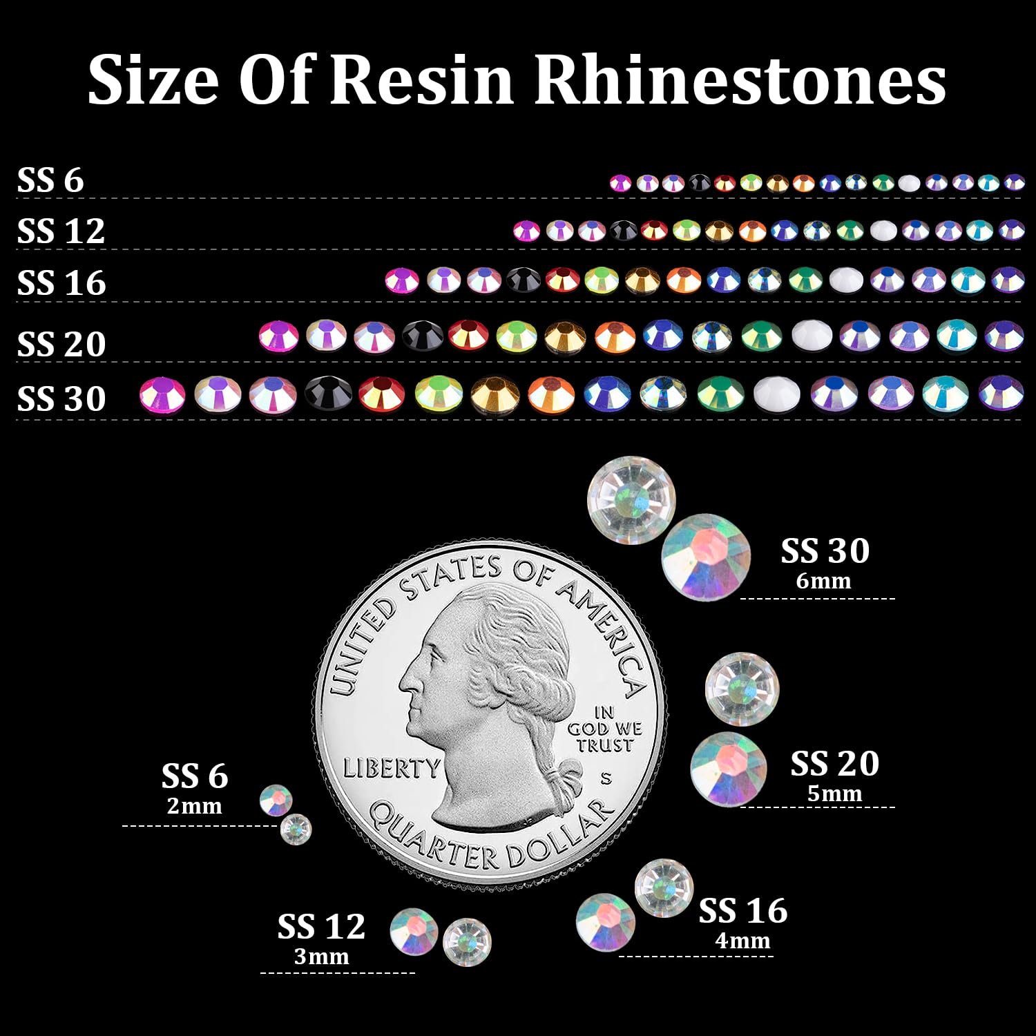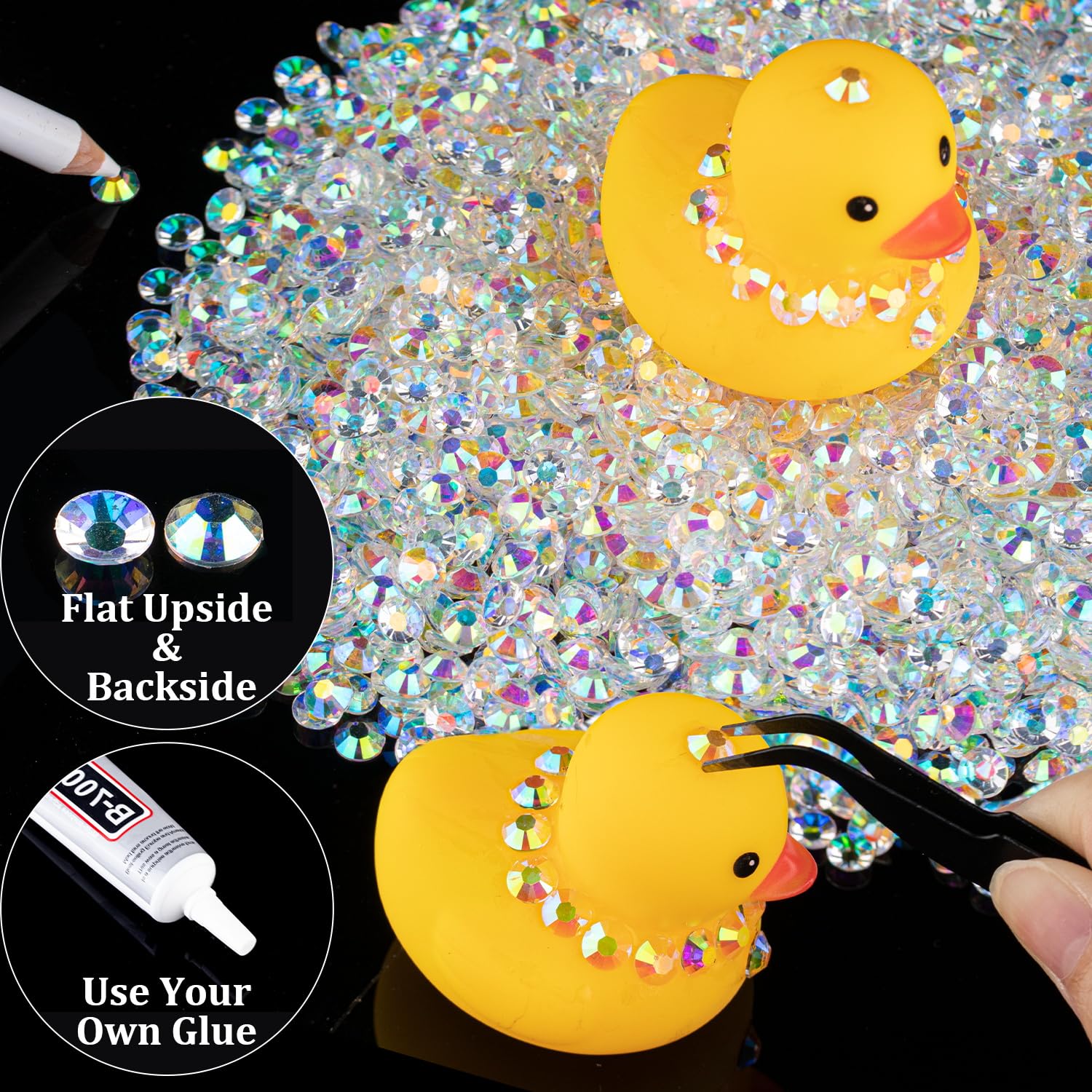 - 💎PACKAGE CONTENT -- Contains approximately 5000 pieces of 3mm-SS12(0.12") Transparent AB color bling-out resin rhinestones. Additionally, a tweezer and 1 pickup pencil are included for easy picking up of glittering gems.