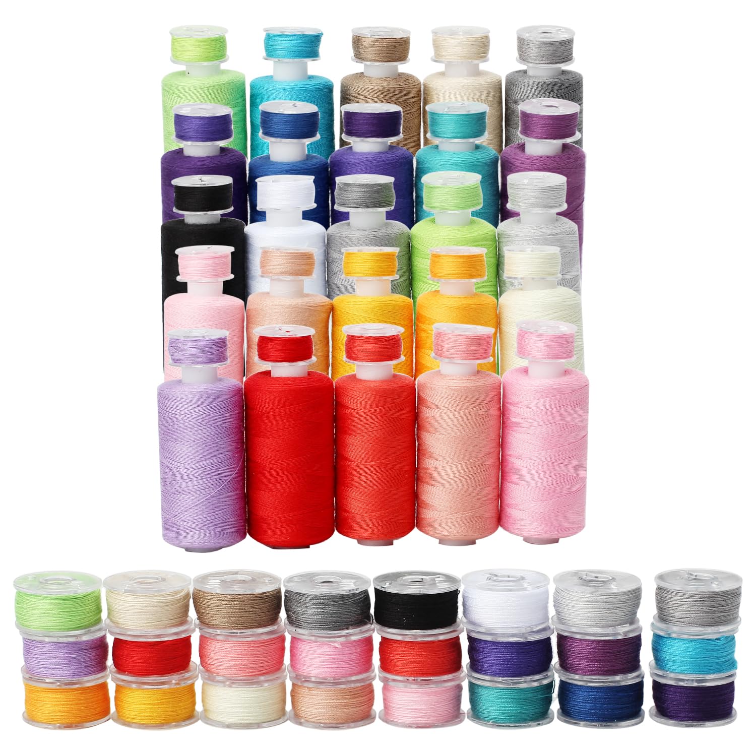 - BRIGHT COLORS bobbin sewing threads kit includes red; yellow; pink; green; blue; purple; orange and gray 5color systems 25 durable and bright colors, which will not be fraying, breaking and tangling up easily, which will meet your needs of colorful sewing projects