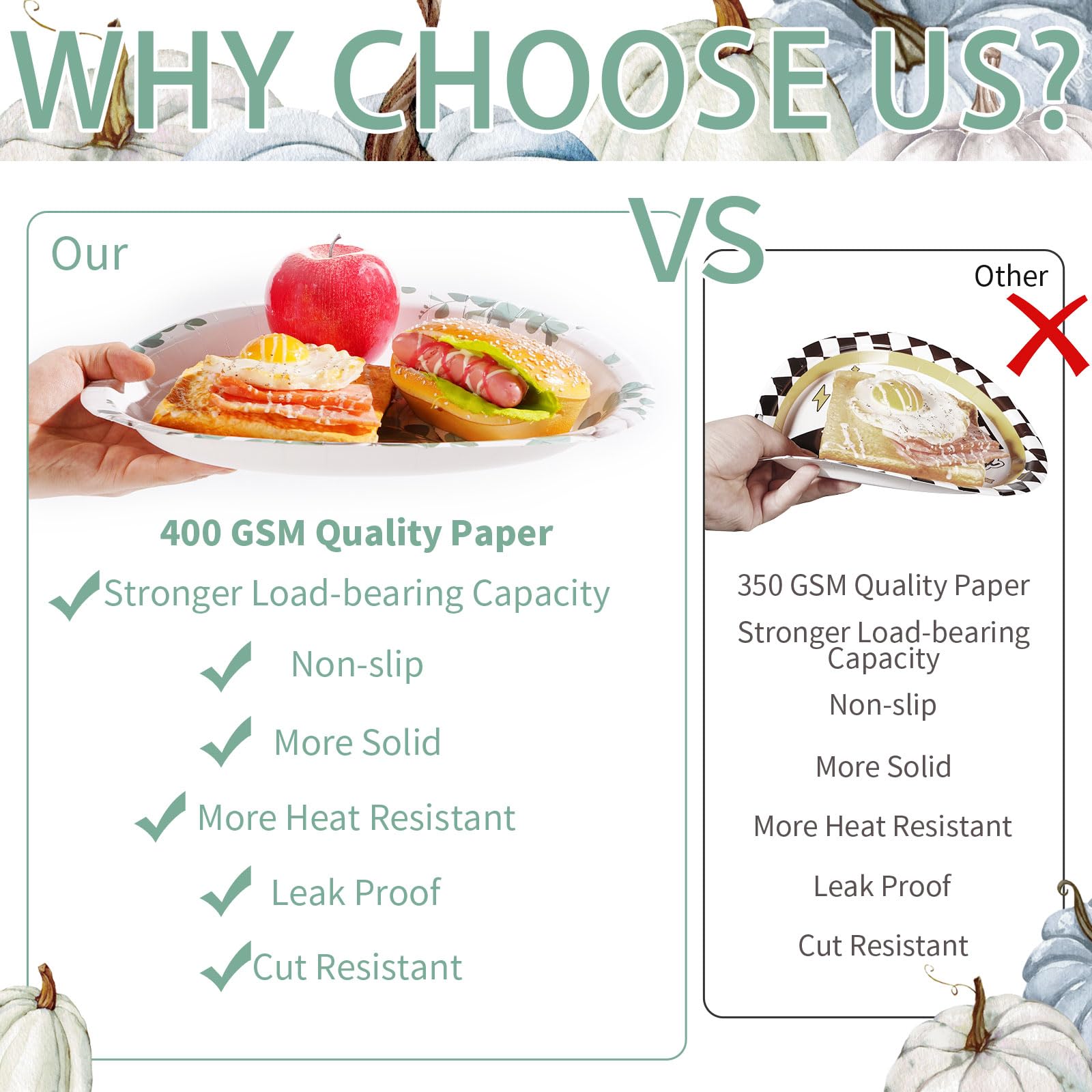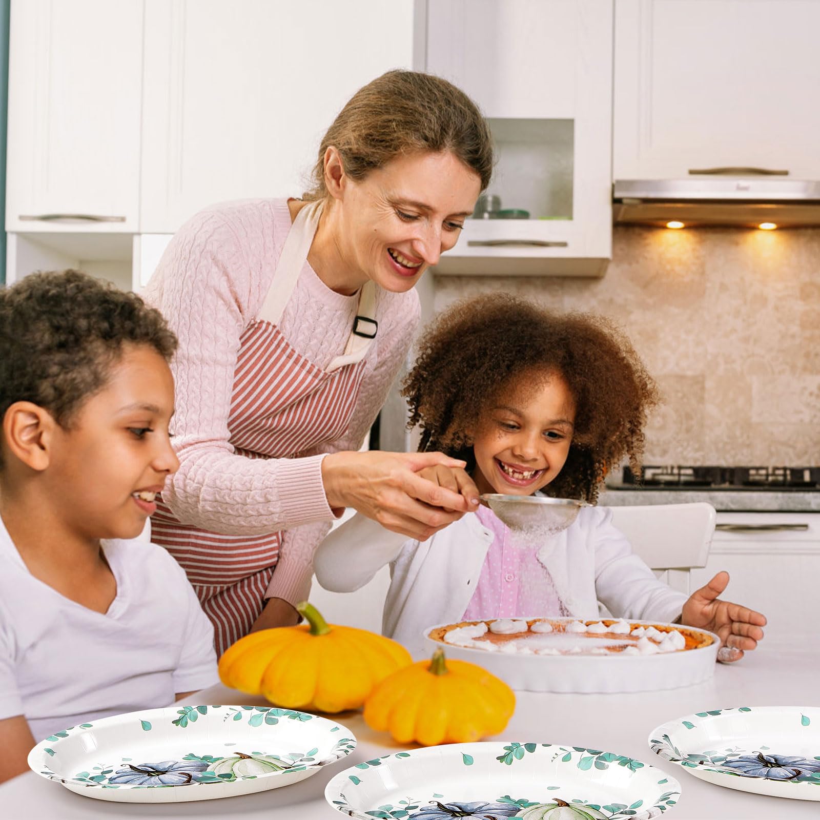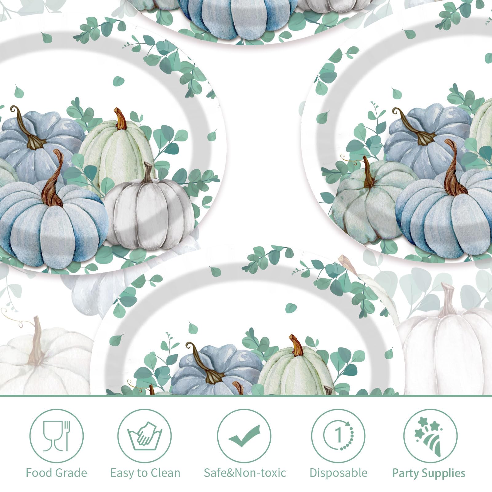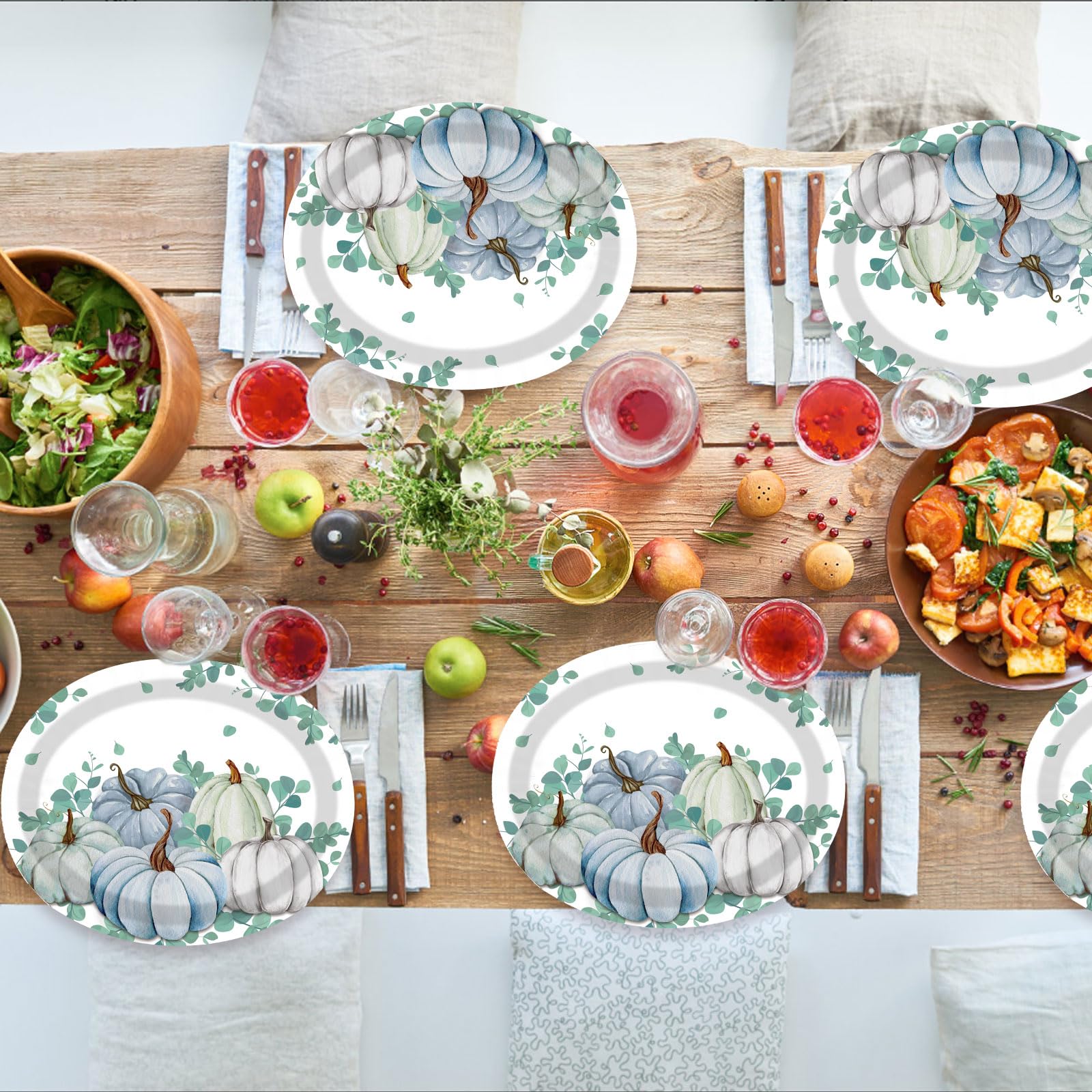 - 【Exquisite Pumpkin Design】Our autumn thanksgiving plates set features watercolor style, designed with white and blue pumpkins, simple and stylish, elegant and generous.