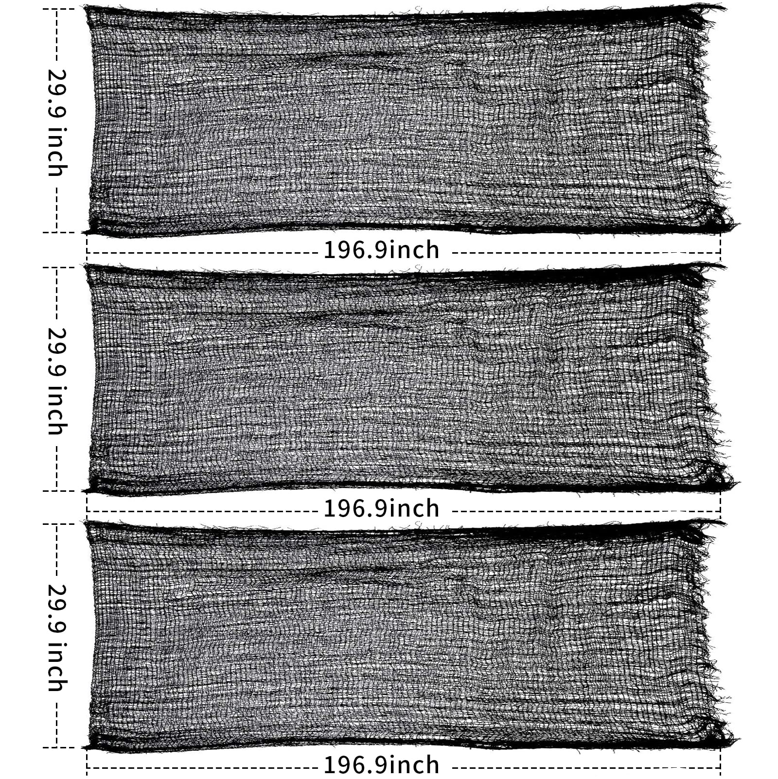 - SUPER SIZE: Spooky halloween decorations include 3pcs black creepy cloth, each measure 5.47yards x 30", they are 16.4yards x 30" in total. Large more than enough to decorate house garden or yard. Happy Halloween!