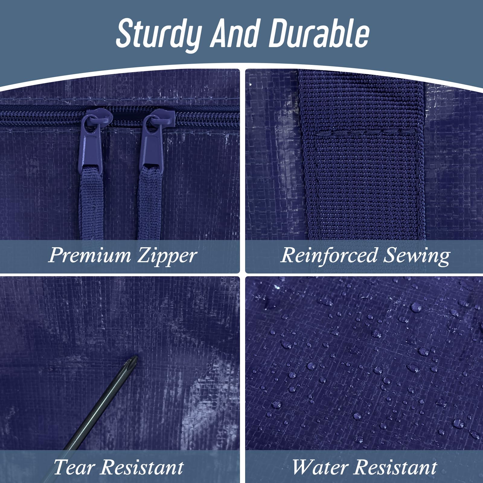 6 Pack Extra Heavy Duty Large Moving Bags with Strong Zipper & Comfortable Handles, Sturdy & Durable Clothes Storage Bags Totes Bins, Blue Packing Moving Boxes for College Supplies, Dark Blue