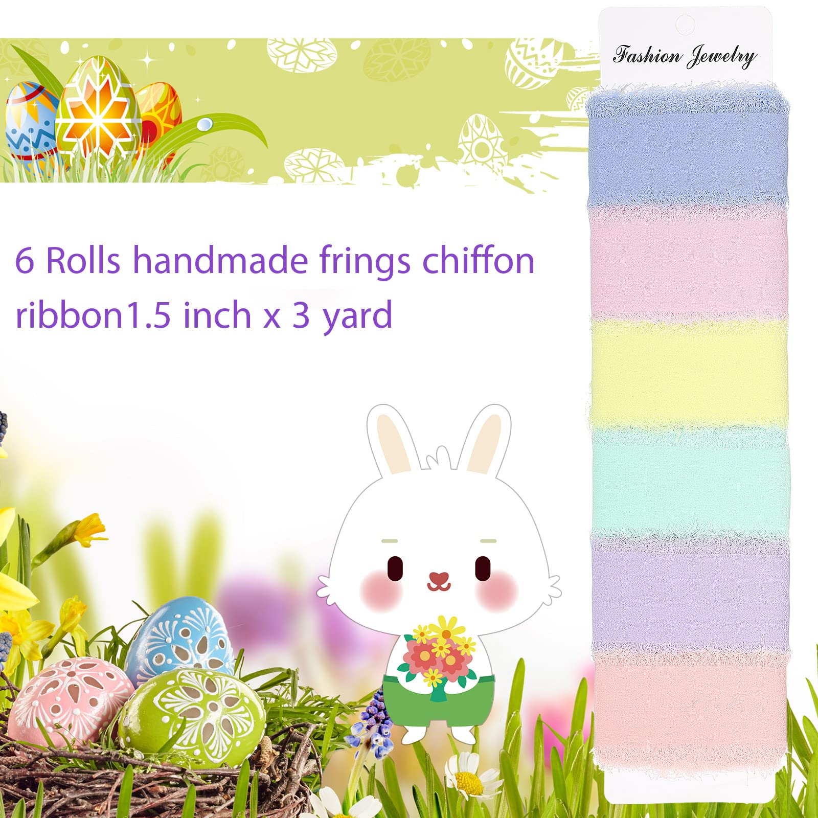 6 Rolls Handmade Fringe Chiffon Silk Ribbon 1.5" x 3 Yd Colorful Ribbon for Wedding Invitations, Bridal Bouquets, Gifts Wrapping, DIY Crafts (Macarons Color Set)