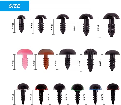 - š Multiple Sizes and Colors āā The diameter of the safety eyes has five different sizes, 6mm, 8mm, 10mm, 12mm, 14mm, and 7 different colors. The safety nose diameter is also available in two different sizes, 11mm and 12mm, three different shapes and three different colors. Multiple sizes, colors and shapes safety eyes and nose can meet your different needs.