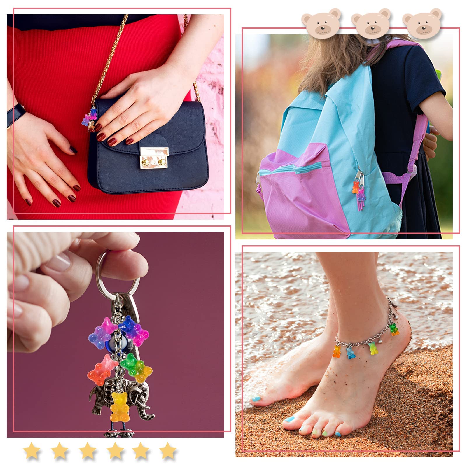 - Wide applications: Each bear has a metal loop at the top so you can string them together. You can also use them as accessories for necklaces, bracelets, anklets, earrings, key chains, smart phone chains. You can glue them to the surface of something you want to decorate as well.