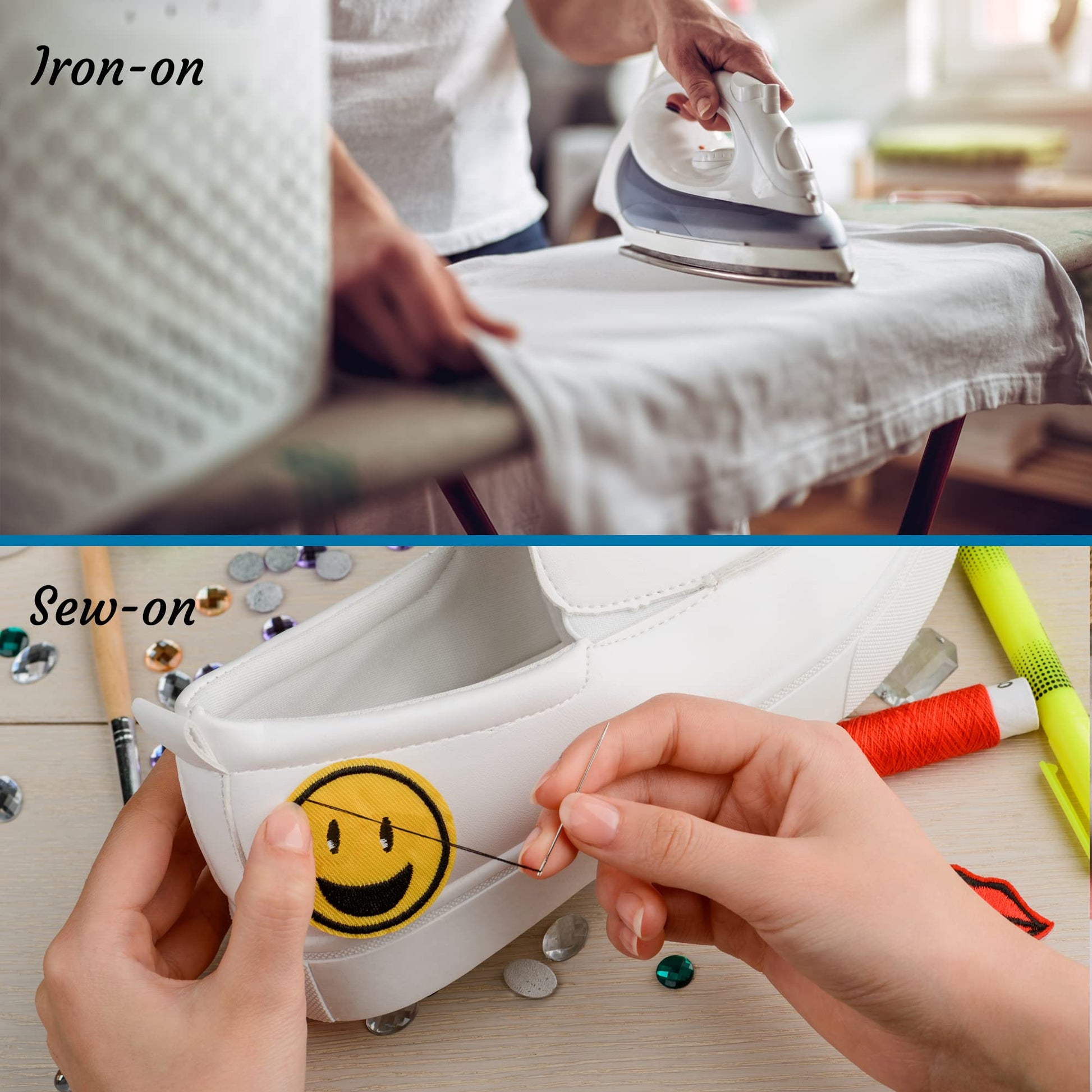 - Assorted with random 60pcs patches. Every patch has a durable adhesive glue on the back for iron-on transfers or sewing onto fabrics