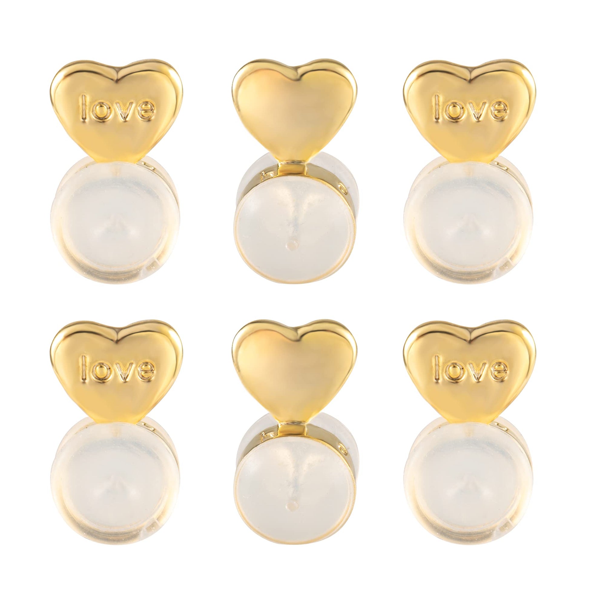 6PCS Heart Silicone Earring Lifter, 14K Gold Plated Love Earring Backs for Studs/Droopy Ears, Hypoallergenic Secure Earring Backs Replacements for Heavy Earrings