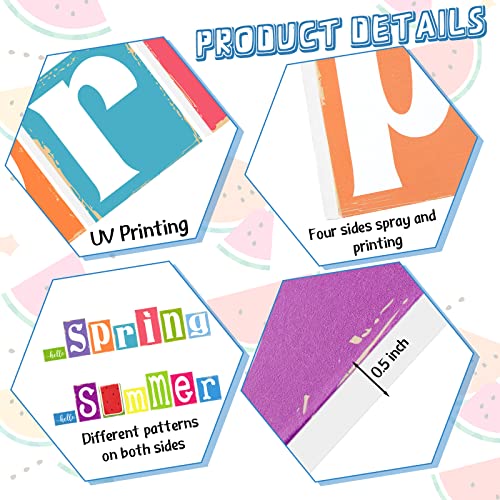 7 Pieces Summer Table Decorations Summer Wooden Sign Decorations for Home Rustic Wood Block Sign Tiered Tray Decor for Kitchen Shelf Home Farmhouse Seasonal Decor(Rustic Style)