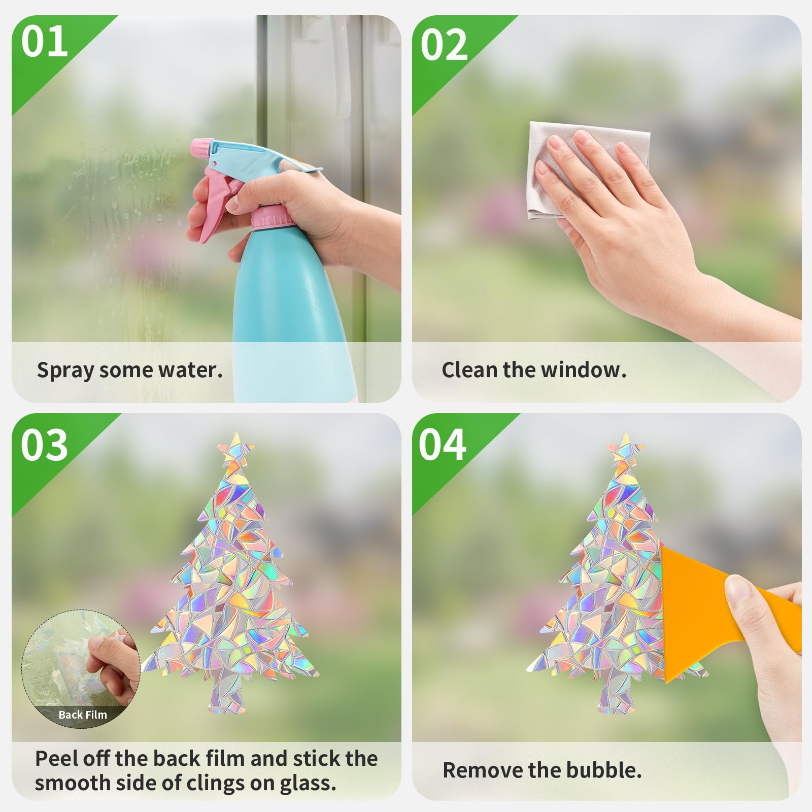- Safe Window Clings: Attach on windows with no adhesive glue or residue; easy to apply and remove. Please make sure the glass surface is flat, clean, smooth and free of any coating, or other ornaments before use
