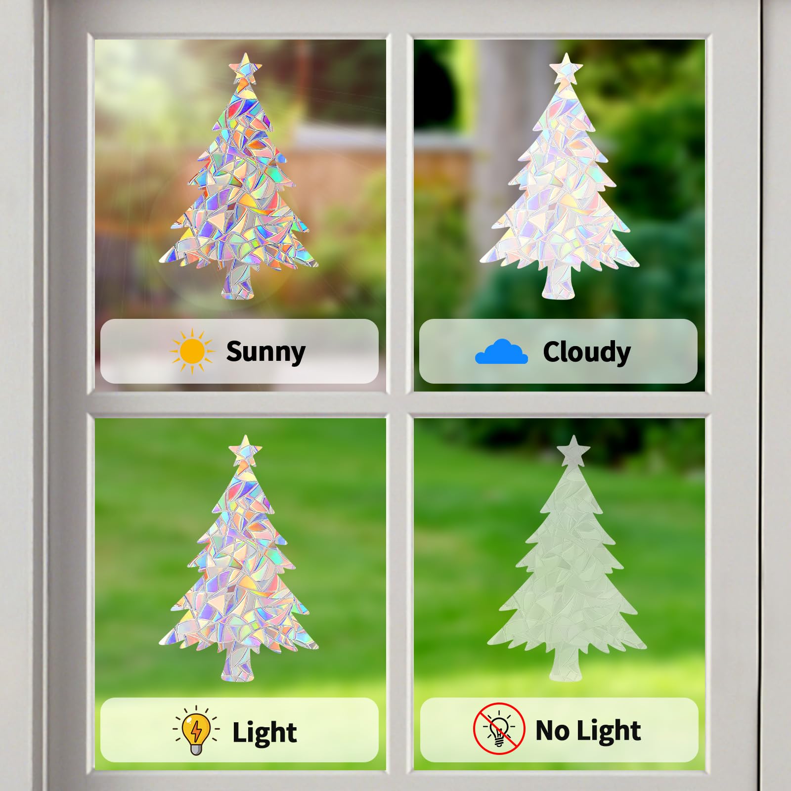 - Suncatcher stickers: Window clings are designed for glass windows, and made of translucent prismatic vinyl material which can capture sun rays and turn into bright colorful light when shines through your window glass