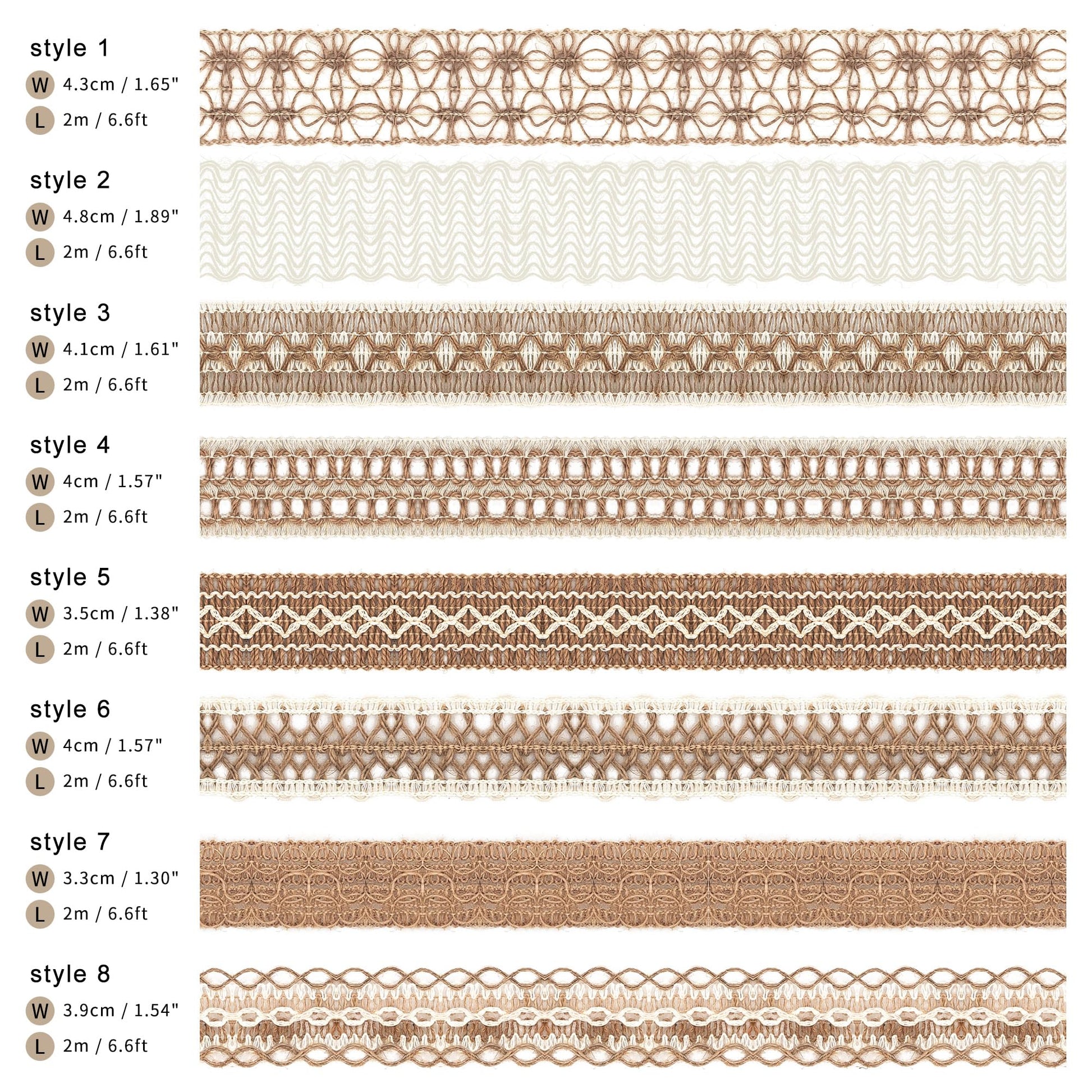 - * ( Suitable Size ) * The width of each lace trim is 3 - 5 cm (1.2 - 2 inch) and length is about 200cm (6.6 feets) per bunch, which is right sized and comfortable to work with.