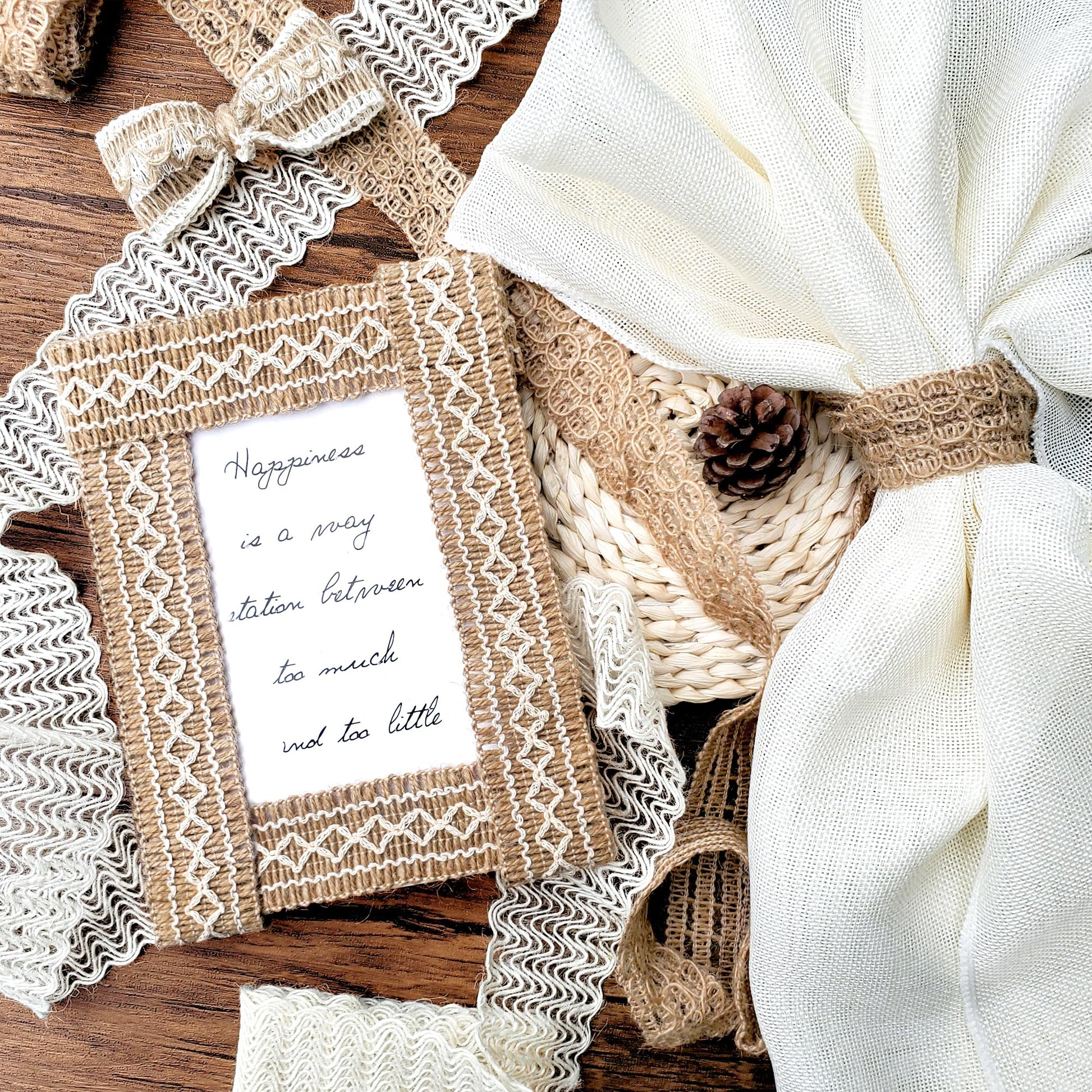 - * ( Natural & Textured ) * Our burlap ribbons are made from natrual jute in brown color, and some are embellishmented by white threads twinning in specal pattern. They are perfect decorations for style of natrual and rustic.
