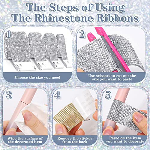 - 💎【Quality Material Rhinestone Ribbons】The diamond ribbons are made of quality resin materials and adopted high-temperature hot melt technology, more stable adhesion, combined with quality water drill made of self-adhesive paper, strong viscosity, and not easy to fall off, The rhinestone adhesive strips can be easily pasted on any smooth surface.