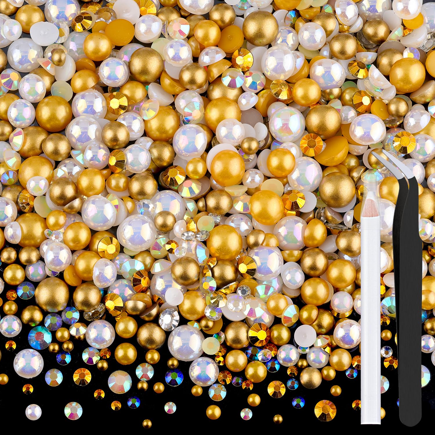 - ✦PREMIUM QUALITY: Our flatback pearls and rhinestones are made of high-quality ABS and resin. Each flatback pearl bead looks shiny and elegant, and the rhinestones have a shiny and colorful AB surface. They are safe and durable, bringing a sparkling and elegant effect to your nails and decors.