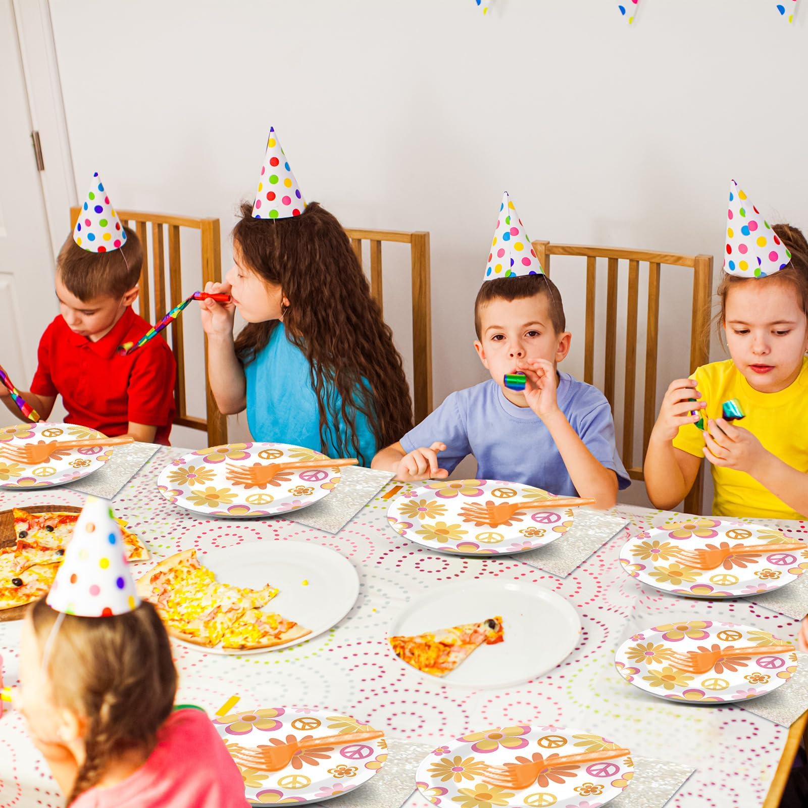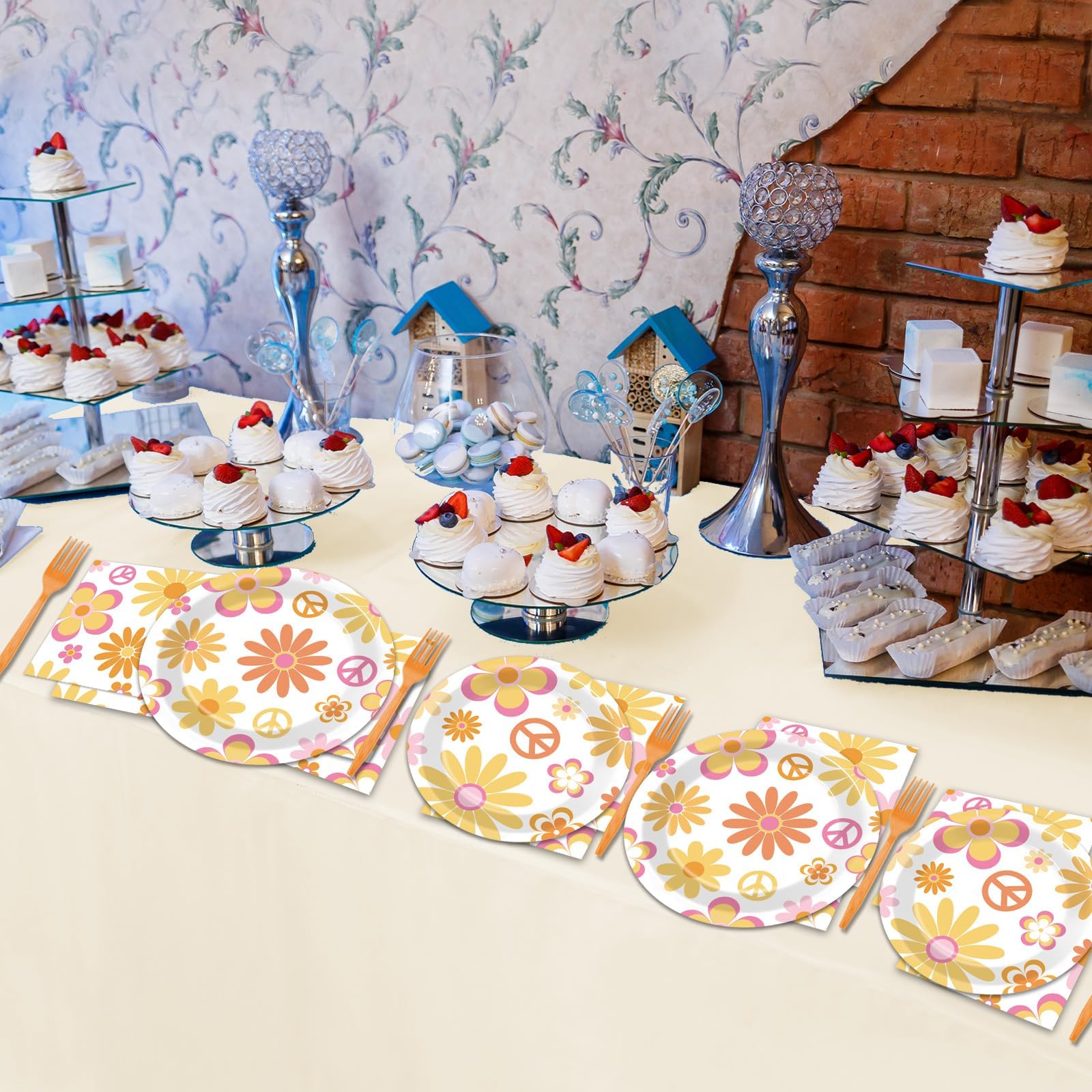 96 Pcs Groovy Party Supplies for 24 Guests Retro Hippie Boho Tableware Plates Napkins Daisy Flower Birthday Dinnerware Table Decorations Retro Hippie Daisy Party Favor for Kitchen Dinning Home Decor