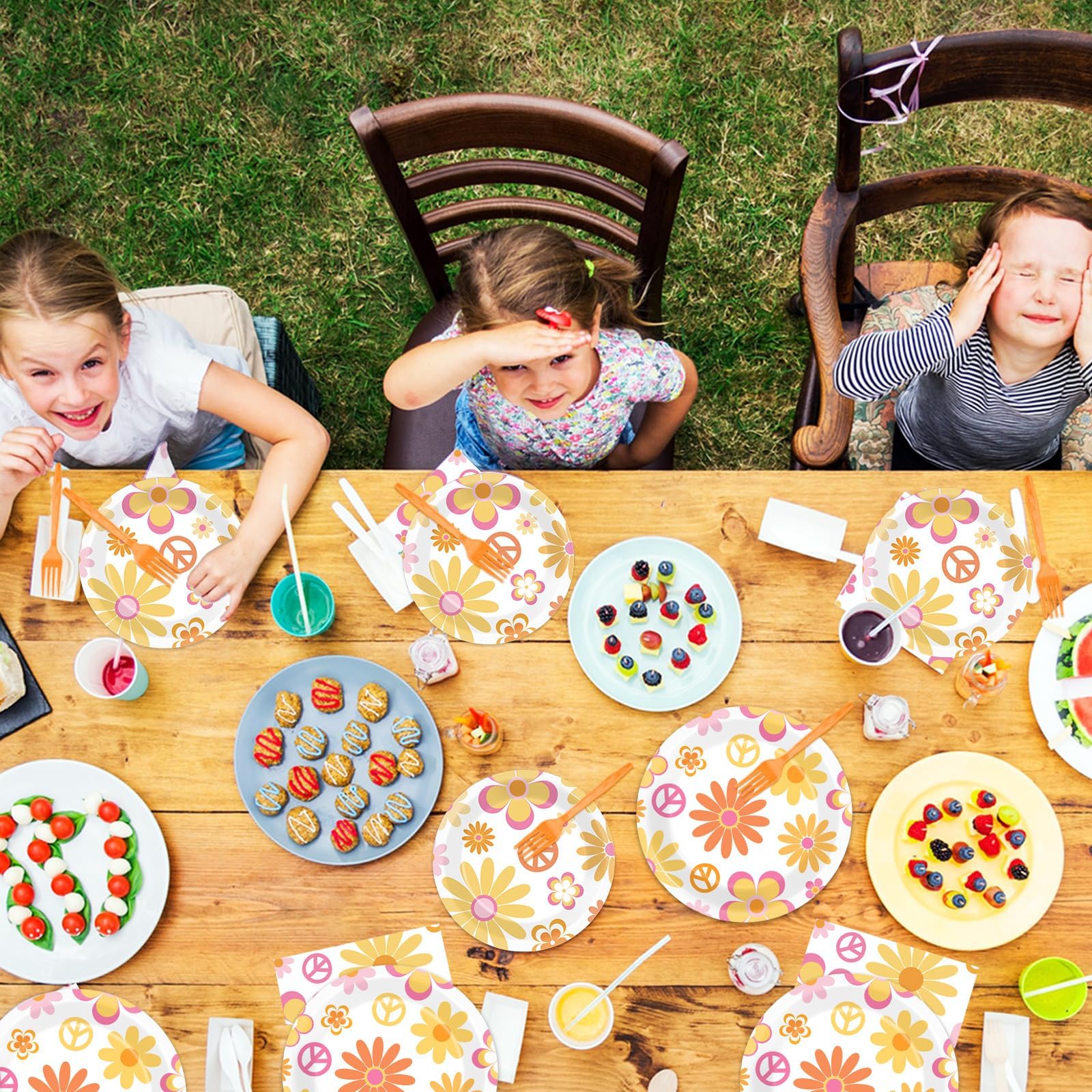 - Package included: You will receive 24 pcs 9" retro daisy flower paper plates, 24 pcs 7" retro daisy flower paper plates, 24 pcs 6.5" retro daisy flower napkins, and 24 pcs plastic forks, each set can serve 24 guests.