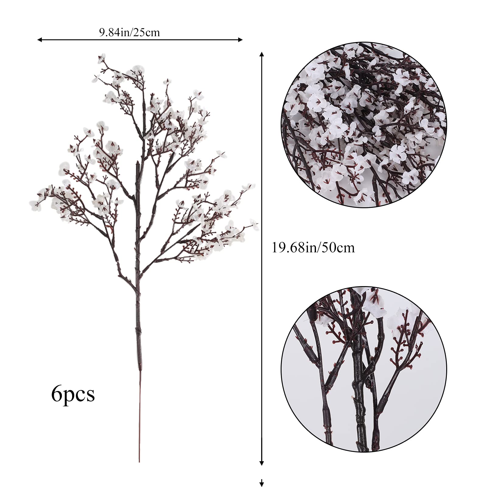 - Full of flowers: 6 Bundles fake silk flowers per pack, each with 6 branches, 19.68in/50cm long and 9.84in/25cm wide, can meet your various DIY needs. Faux flowers are dense, the colors are natural, bringing you a fresh and natural breath