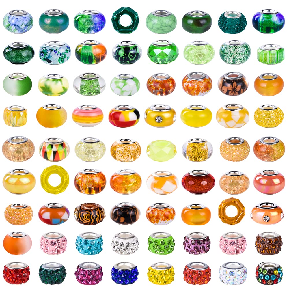 Aipridy Assortment European Large Hole Beads Spacer Beads Rhinestone Craft Beads for DIY Charms Bracelet Jewelry Making (Green-Orange-Lemon)