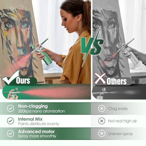 - 🌸 [Real High Pressure for Smoother Spray]:2023 Newest Airbrush Kit with advanced High-sensor Motor & 3 powerful air pressure up to 28psi, ensures more smooth and consistent paint flow, and allow a great coverage for large artwork as well as fine detailing. Lower pressure for detailed lines like airbrush makeup cosmetics, nails art, model coloring, hair dye, tattoos; higher mode for larger areas such as art painting, graffiti, cake decor, and any DIY paints.