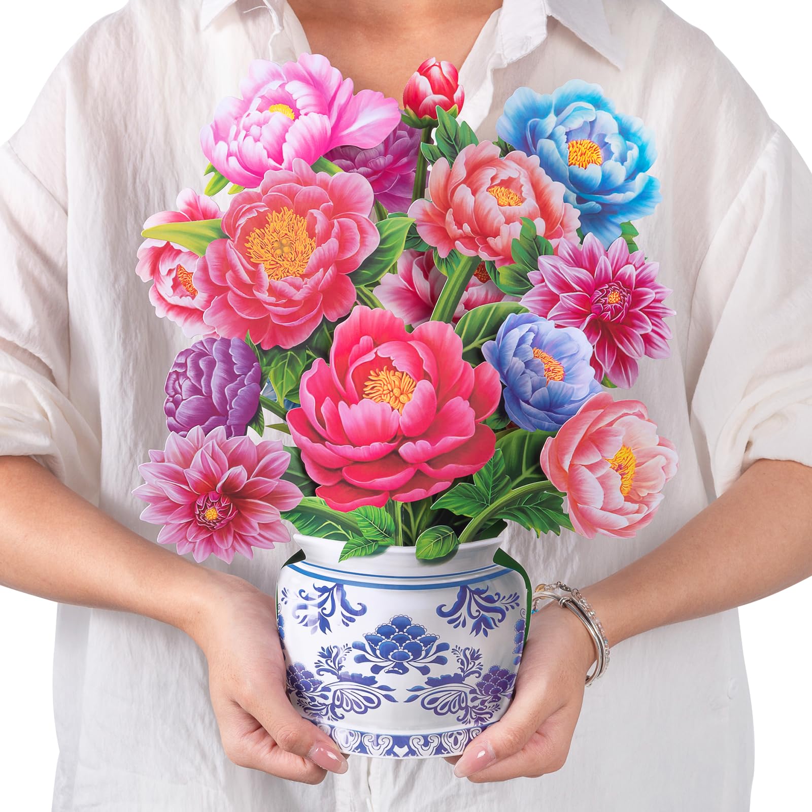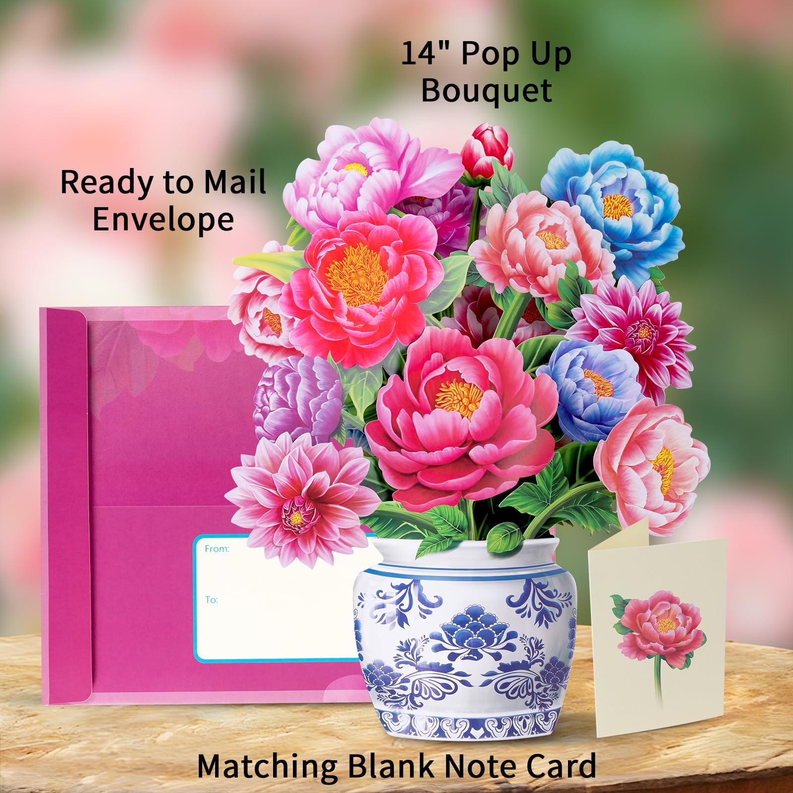 Airpark Paper Pop Up Flower Bouquet Card, Peony Flowers, Gift Cards 14 inch Forever Flower Paper 3D Popup Cards with Note Card and Envelope for Birthday Cards, Gift for Her