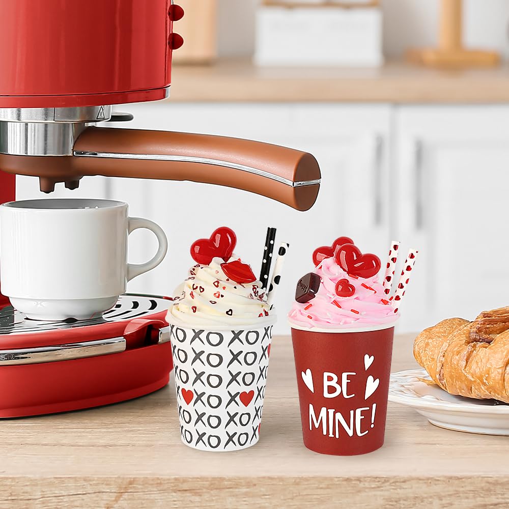 AKEROCK Valentines Day Decor, 2 PCS Paper Cups Filled with Artificial Whipped Cream for Table, Tiered Tray, Kitchen Coffee Bar - Valentines Day Decorations for the Home