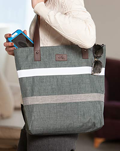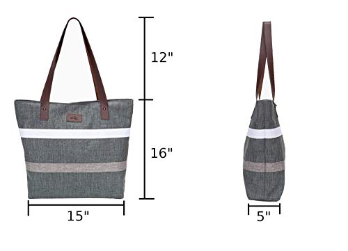 - š UPGRADED DIMENSIONS: 15" L X 16" H X 5" W with 12" PU Leather straps which can fit most laptops, cellphones,10.1" tablets, books, day planner, makeup, umbrella, coffee mugs, and more. š MATERIALS: Made from high quality 300D Oxford fabric lined with premium cotton and zipper top closure that is easy to clean, low maintenance, and wear resistance. š CAPACITY: Contain two open pockets and one zipper compartment for easy to access like cellphone, keys, makeups, credit cards, badges, earrings, etc. š PERFECT GIFTS: Anniversary, girlfriend, sisters, mom, friends, Valentine's Day, Christmas, Mother's day, birthday, and more. š USES: Great for the office, professional, travel, carry on, business, weekend, diaper bag, mall, commuters, school, teacher, nurse, caretaker, casual, parties, summer, fall, winter, spring, all seasons, and more. How to care: Do not tumble dry. Do not dry clean. Do not bleach. Low iron if necessary. Machine wash at 30 C (86 F).