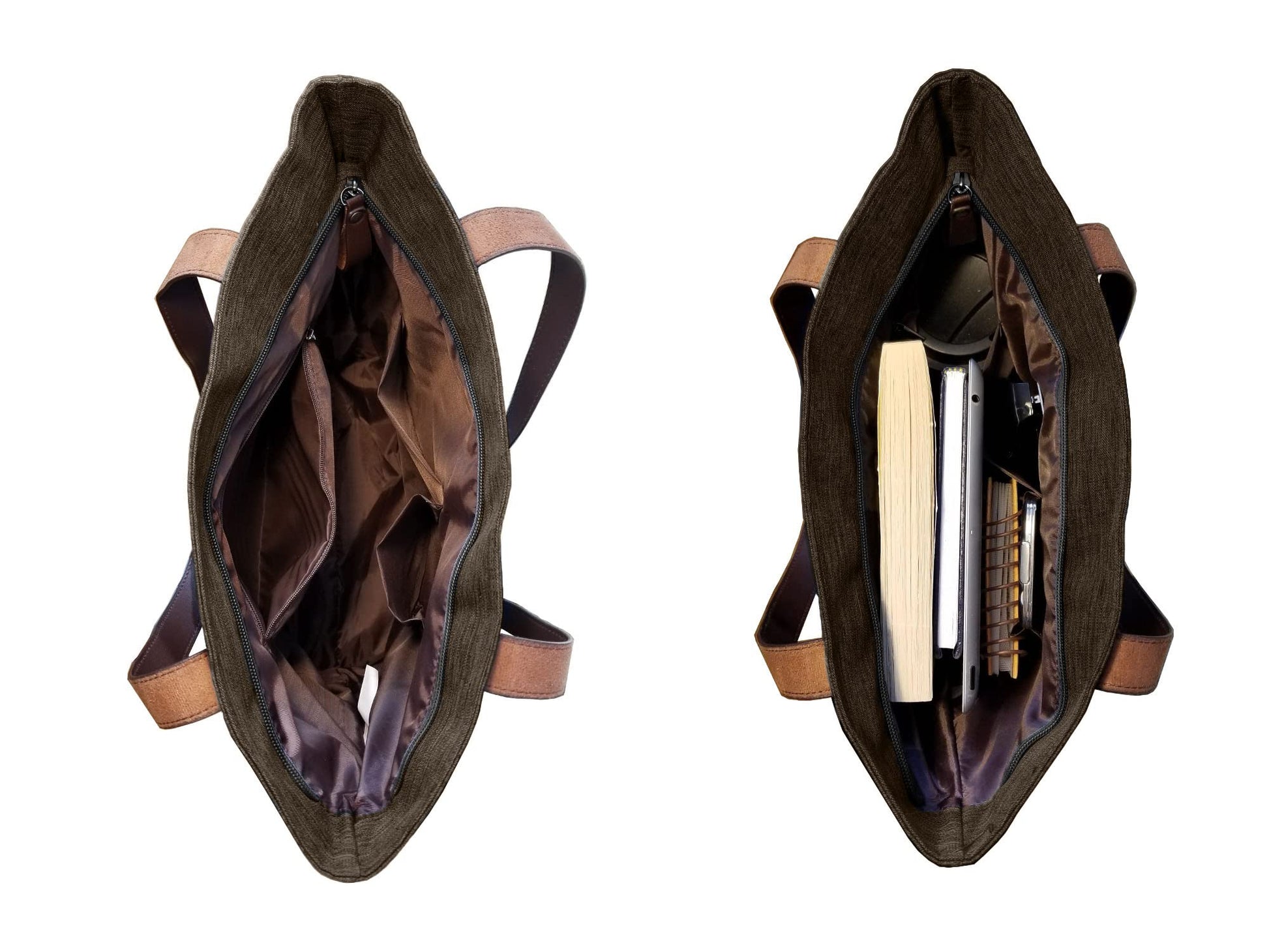 - ✔️UPGRADED DIMENSIONS: 15" L X 16" H X 5" W with 12" PU Leather Handle straps can fit most laptops, 10.1" tablets, books, magaz