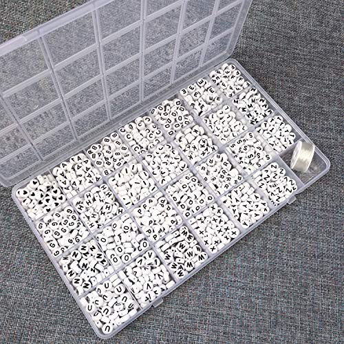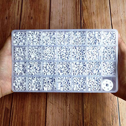 Details: Color:White Beads with Black Letters The print of letter beads is very clear. They are round beads with round edges. The 26 kinds letters in the storage box are placed separately so its ease for use and you will neverbe lack of any alphabet. These beads can be used for party games, you can mix and match, and DIY unique name jewelry or spell the words you want to express as a one and only gift for Mother's Day, Teacher's Day, Thanksgiving etc. This pack of 1400 acrylic beads are perfect for a DIY enthusiast too.