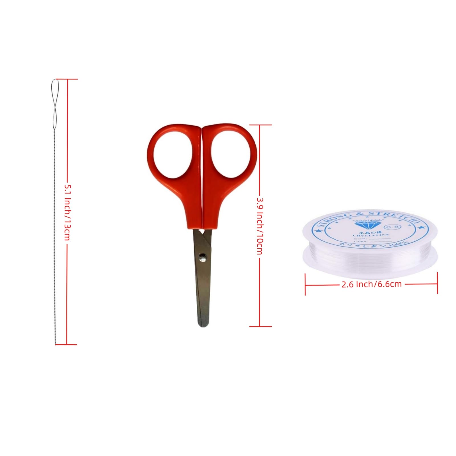 - Quantity: Comes with 1 scissors,1 Beading Needle and 4 roll of 0.8mm elastic cord, each roll is 7 meters;