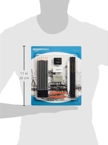 Amazon Basics Sketch and Drawing Art Pencil Kit, 17 Piece Set, Charcoal, Black, White