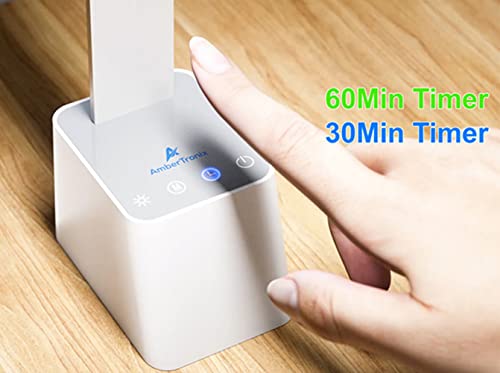 Ambertronix Rechargeable Cordless LED Desk Lamp, 5 Brightness & 5 Lighting Modes, USB Charging Port, Aluminum Arms, Portable, Dimmable, Touch Control, Auto Timer (White)