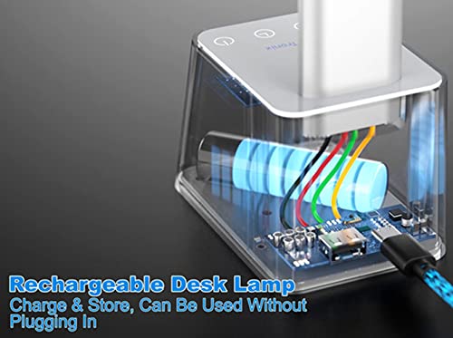 - ⭐ RECHARGEABLE WIRELESS LED DESK LAMP - LED Lamp With Built-in Battery. Up to 14 Hours Of Cordless Desk Lamp Lighting On One Charge. (est. 3.5hrs on high brightness, & 14hrs on low brightness. ) Cordless Lamp Is Fully Charged In Just 3 Hrs Using USB-C. High Capacity 2200mAh Battery.