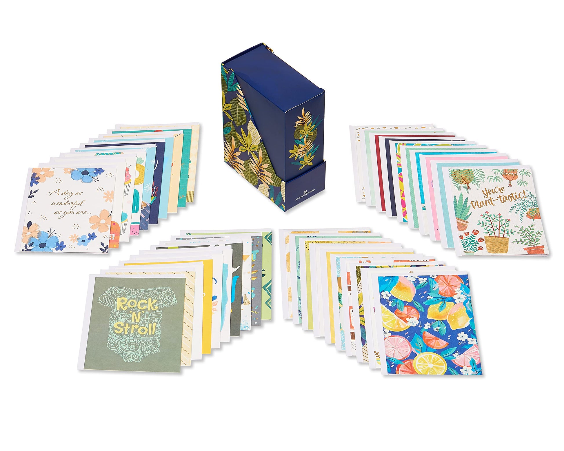 - This deluxe greeting card bundle features 40 cards for popular everyday occasions, packaged in a durable keepsake box with a matte finish and a painterly design.