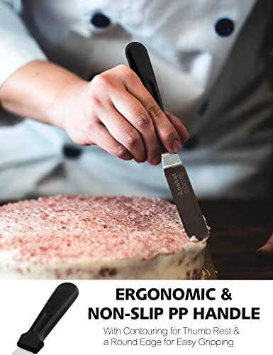- ERGONOMIC & NON-SLIP HANDLE: The flexible spatulas crafted with the highest quality stainless steel and paired it with a non-slip plastic handle. Ergonomic handle is shaped for comfort and control.