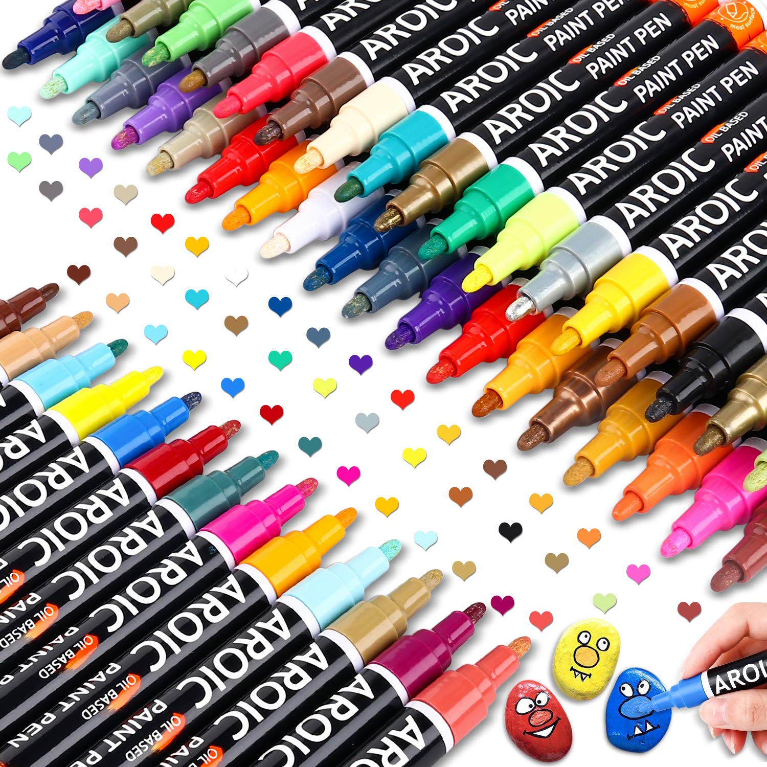 AROIC Paint Pens for Rock Painting - 48 Pack.Write On Anything! Paint pens for Rock, Wood, Metal, Plastic, Glass, Canvas, Ceramic & More! Low-Odor, Oil-Based, Medium-Tip Paint Markers