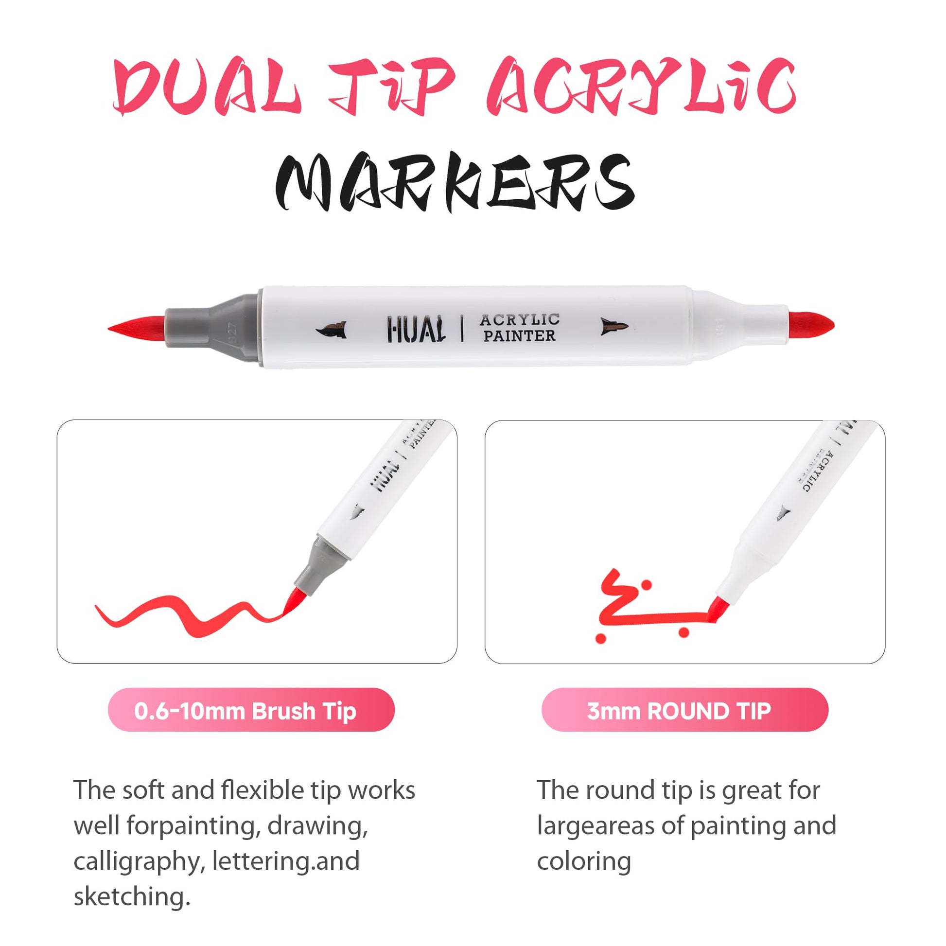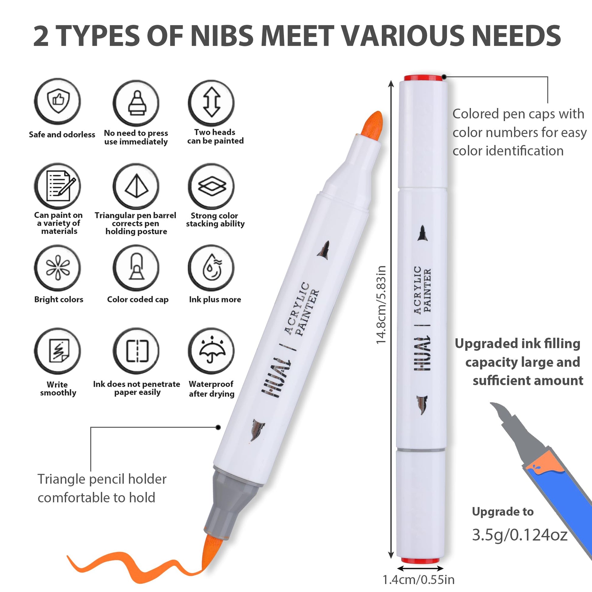 - 【Non-Toxic & Safe For Kids】Our acrylic paint pens paint markers set is perfect for cultivating children's patience and imagination, The paint pens ink is non-toxic and tasteless,which have pass ASTM D-4236 and EN71 safety standards. When children use markers alone, they may accidentally swallow the pen cap, which may lead to suffocation. To avoid this situation, we carefully improved our pen cap to have an air inlet, greatly reducing the risk of children using acrylic pens.