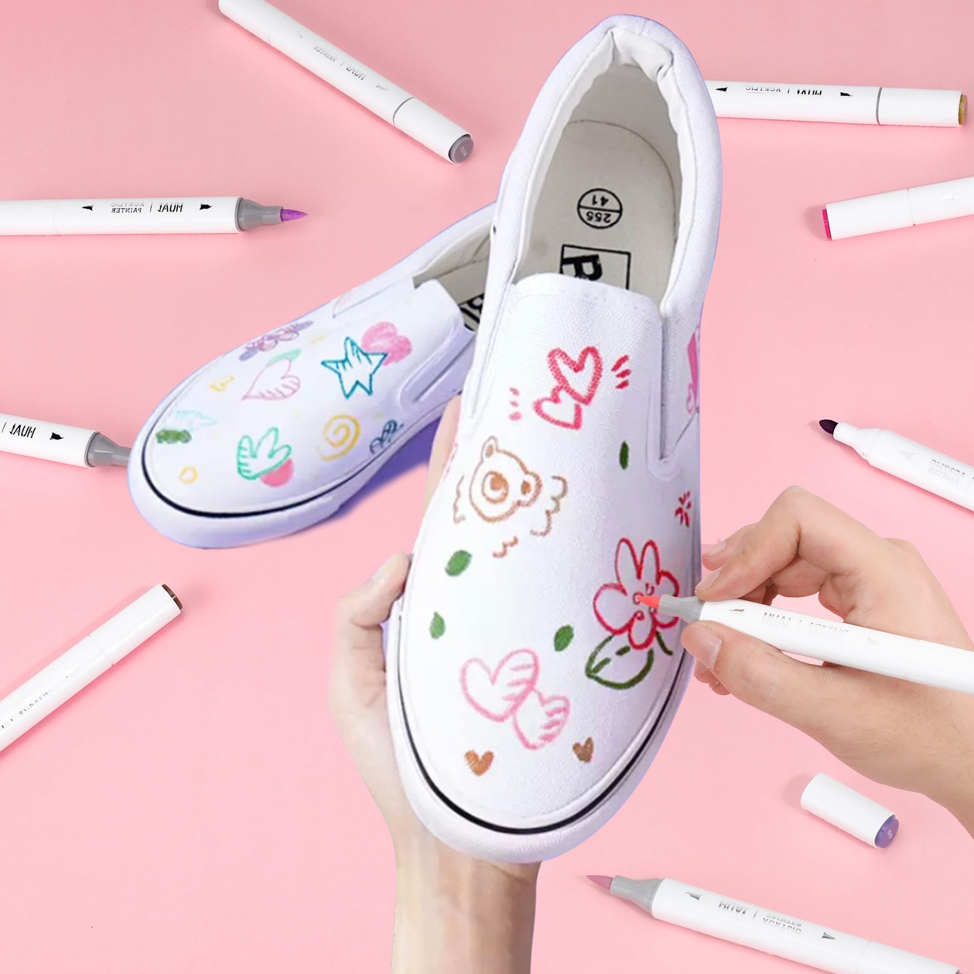 - 【Best Results】This waterproof textile markers with good finish and coverage allows you to achieve high quality results on white and light colored fabric. Regardless of whether design a lovely t-shirts, shoes, bags, pillows, name labels for clothes or simply customized your look.