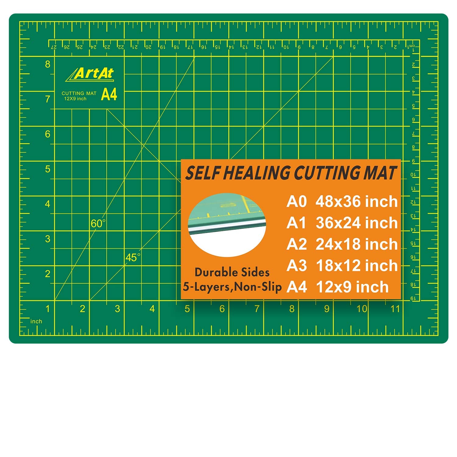 ArtAt Self Healing Cutting Mat: 9"x12" Non-Slip PVC Double Sided 5-Ply A4 Art Craft Rotating Mat, Rotary Cutting Mat for Quilting, Sewing Crafts Hobby Fabric Precision Scrapbooking Project Gr