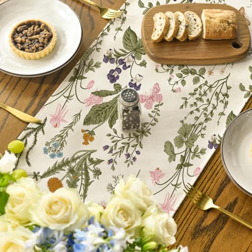 Mode Wildflowers Floral Spring Table Runner, Seasonal Summer Butterfly Kitchen Dining Table Decoration for Home Party 13x72 Inch