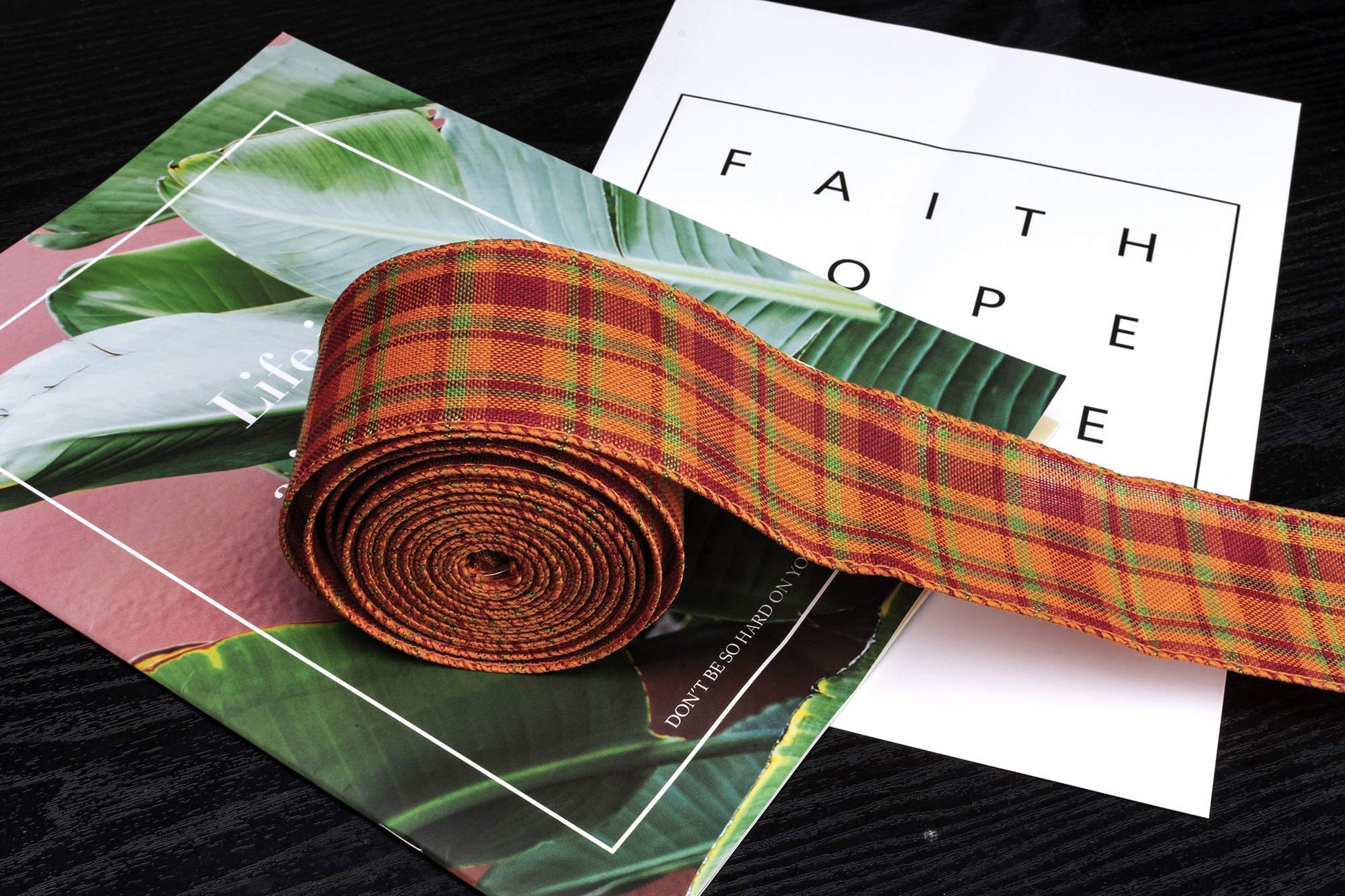 ATRBB Orange/Red/Green Buffalo Plaid Ribbon Wired Edge Gingham Ribbon for Thanksgiving Decoration and Bows Craft,10 Yards by 2.48 Inches (Style 6)