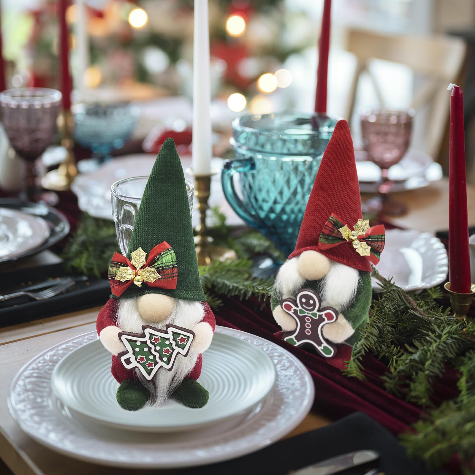 Christmas Gnomes Plush with Gingerbread,Handmade Xmas Tomte Swedish Nordic Red Green Gnomes Figurine Classical Navidad Elf Gifts Noel Ornaments for Home Office Decor