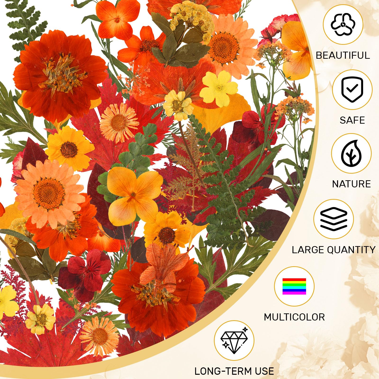 - Natural Dried Flowers: Each orange dried flowers for resin and leaf is a natural plant. After careful selection and natural drying, the original color and shape of dried pressed flowers leaves are preserved, adding unique charm to your home decoration or handicraft