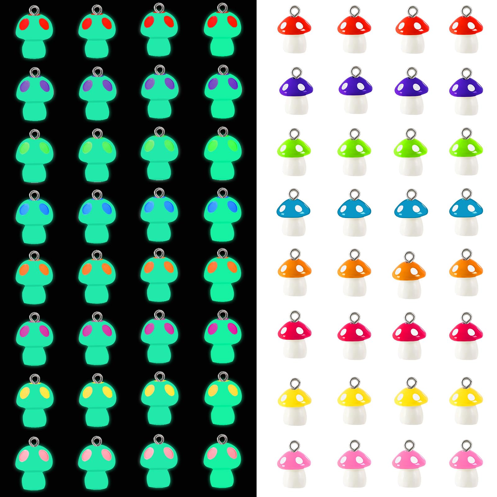 Charms, 64 Pcs Mushroom Resin Charm Beads Ornament Glow in The Dark Pendant for DIY Bracelet Necklace Jewelry Making