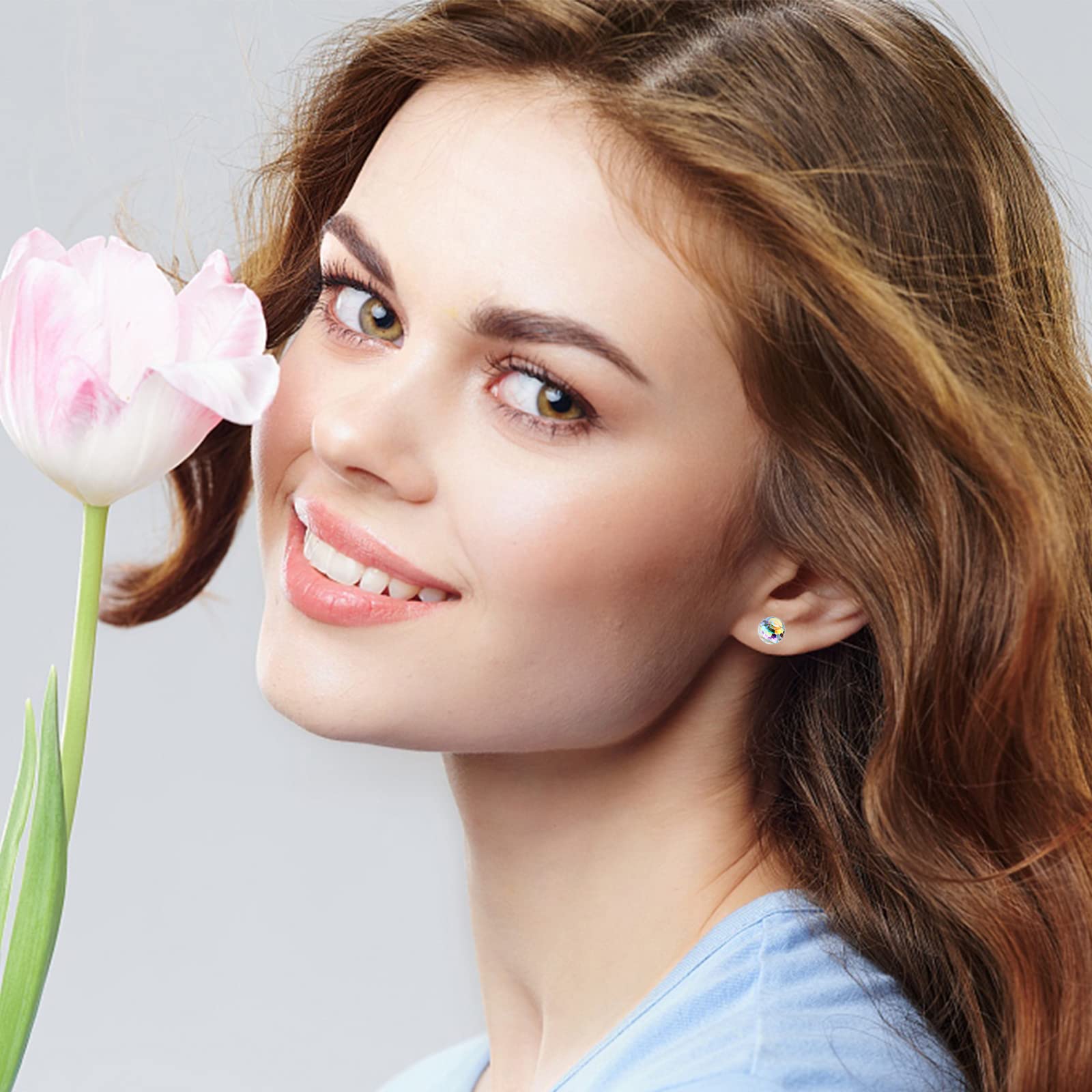 Austrian Crystal Earrings for Women 8MM Austrian Crystal Disco Ball Earrings for Women Disco Earrings Iridescent Earrings Crystals Stud Earrings Hypoallergenic Earrings Disco Jewelry for Women