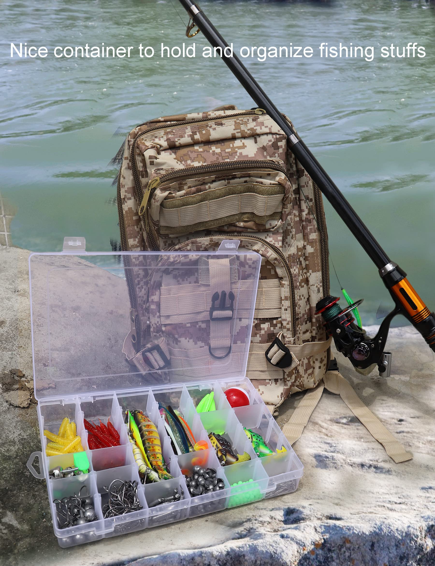 Avlcoaky Tackle Box Organizer Plastic Organizer Boxes Large 18 Grids Compartment box with Dividers Clear Containers Jewelry Beads Storage