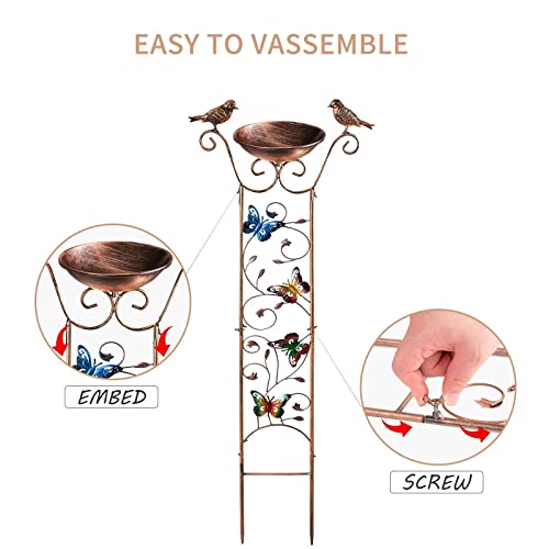 AWENDIETOU Bird Bath with Garden Trellis for Climbing Plants Outdoor 2 in 1 Bird Baths Bowl,Bird Bath for Outdoors Birdfeeder with Metal Antique Iron Easy to Install Detachable T